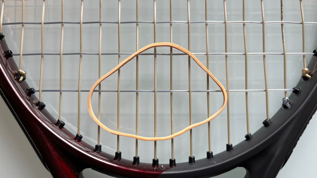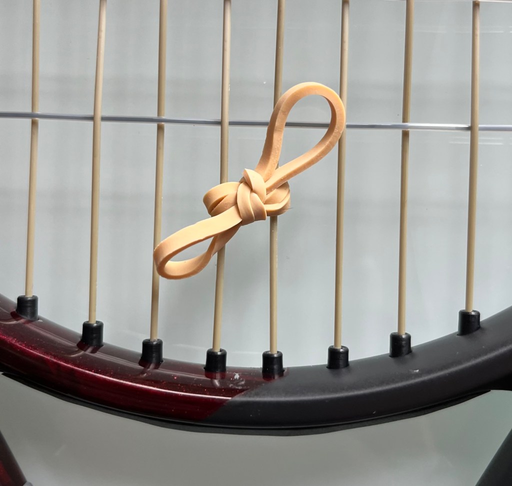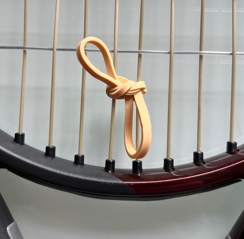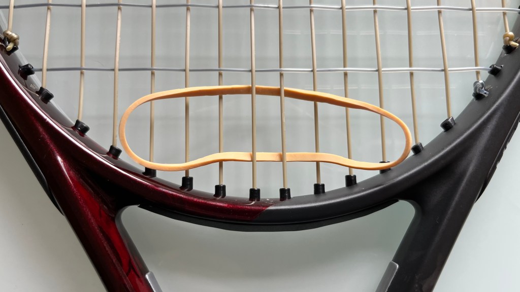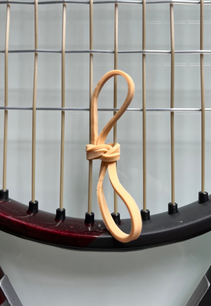 You’ll need two things: 1) A racquet, and 2) a rubber band. See below.