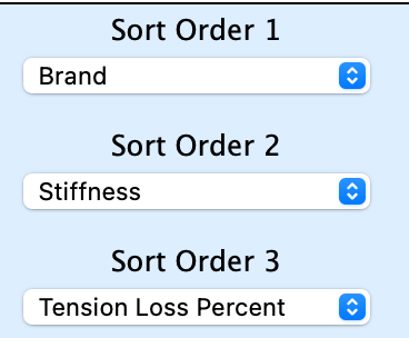 If you are looking for a string with better comfort, then you are looking for a string a lower stiffness and lower tension loss percent than your current string. You’d sort the result by brand to make it easier to pick a string that you know you can buy.